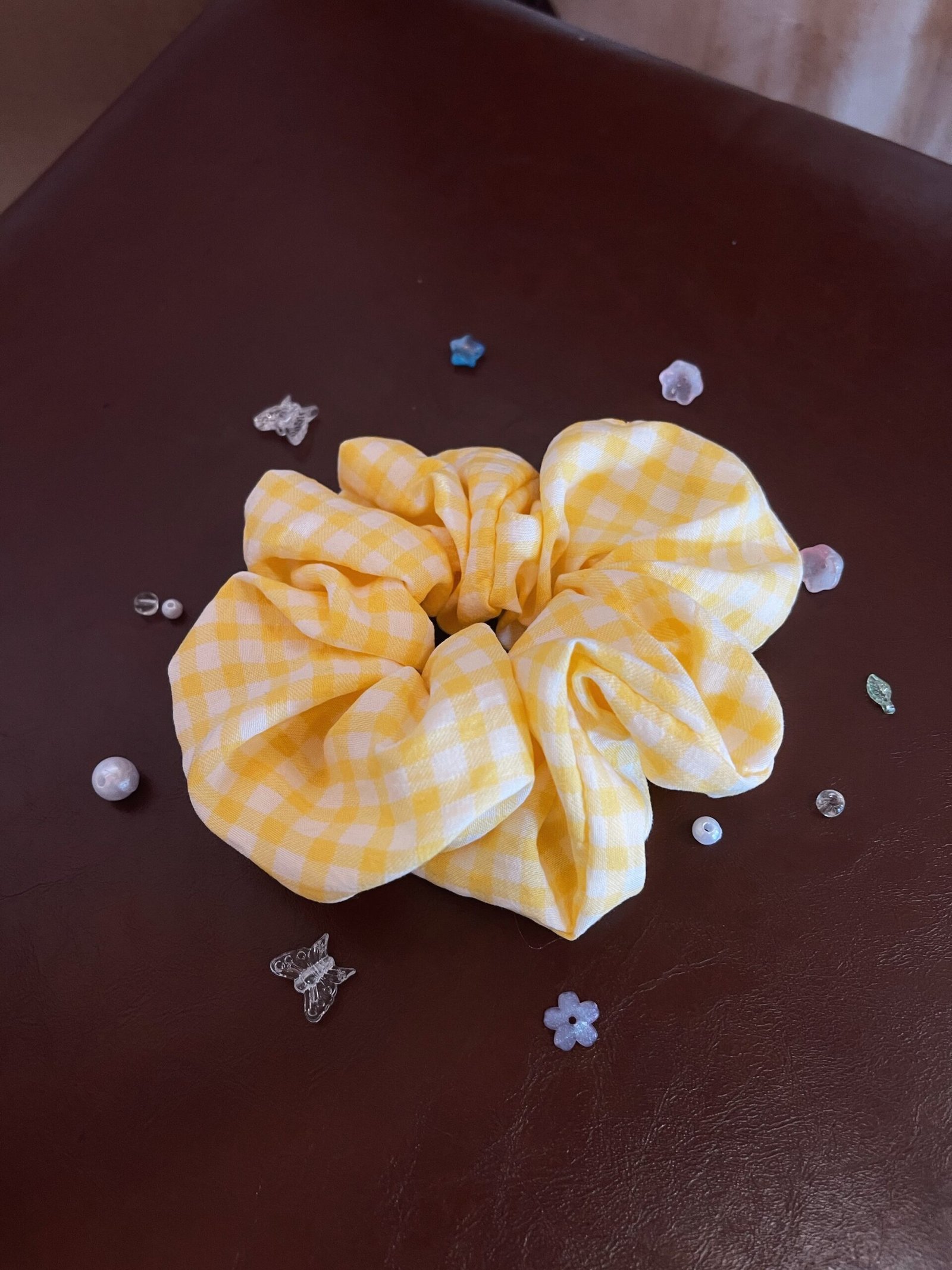 Dây cột tóc caro vàng chanh được làm thủ công với chất vải mềm, họa tiết caro trẻ trung và màu vàng chanh nổi bật. Thiết kế đơn giản nhưng dễ phối đồ, phù hợp với phong cách năng động, nhẹ nhàng.